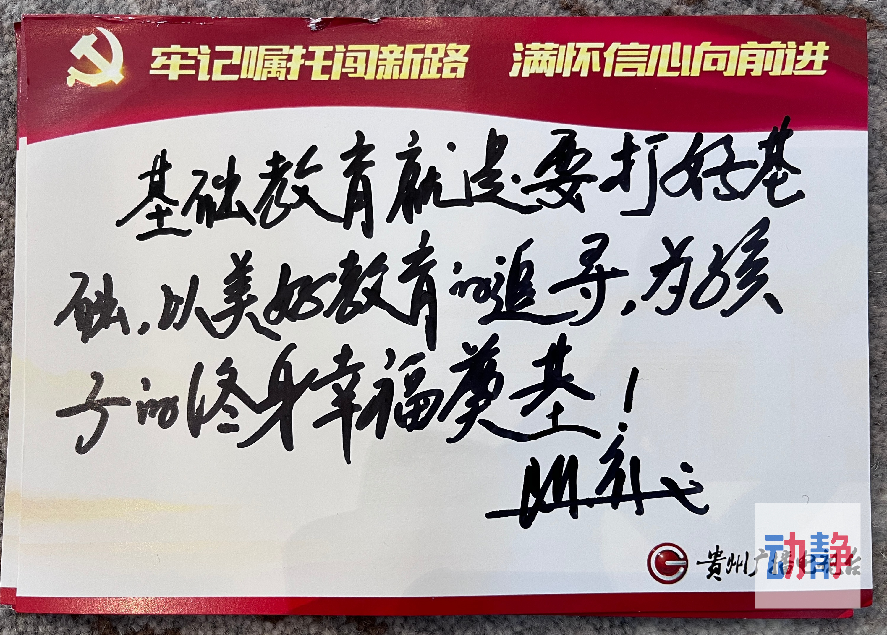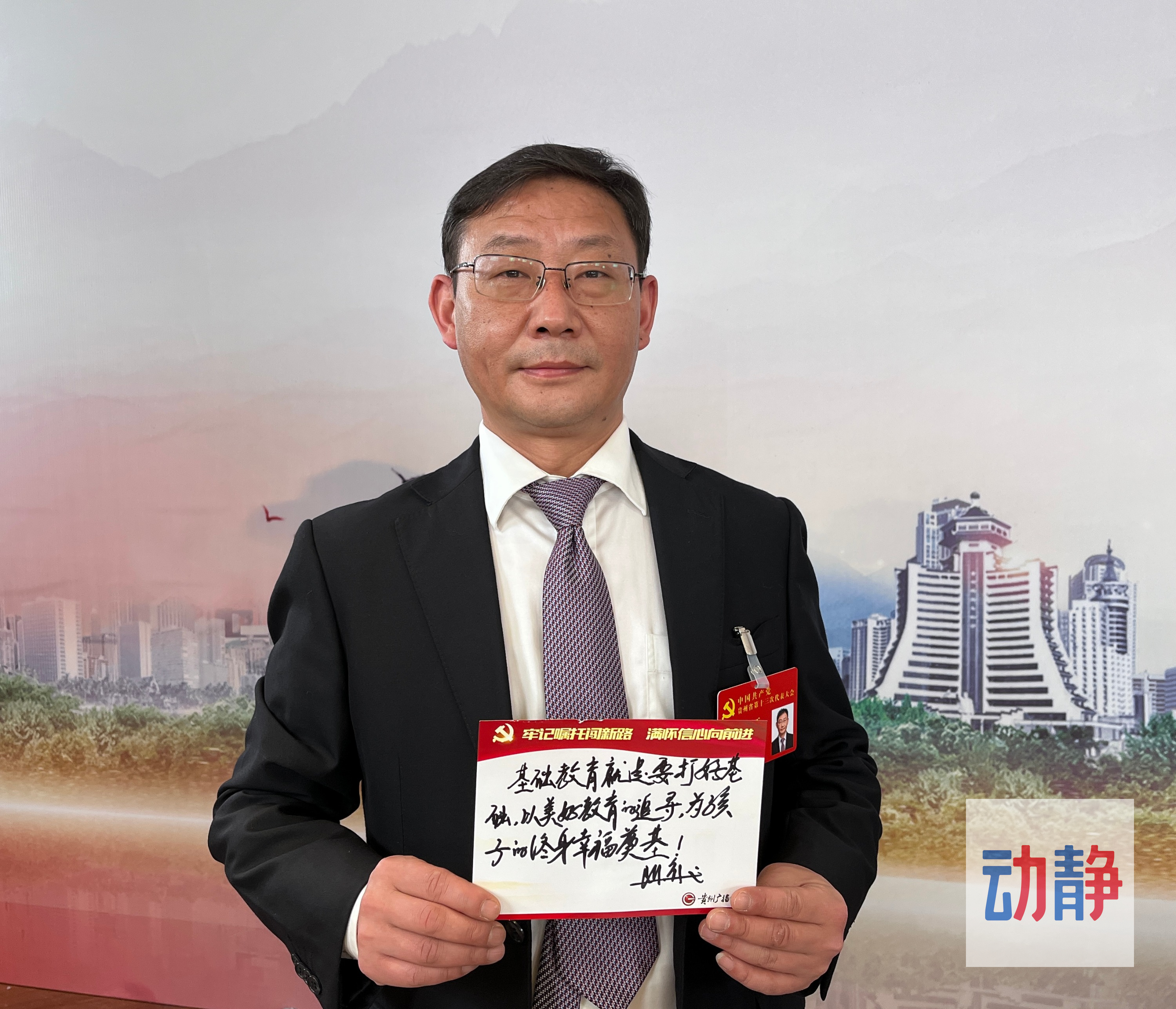 省党代会代表、贵阳市第一中学校长陈章义写下:“基础教育就是要打好基础,以美好教育的追寻,为孩子的终身幸福奠基。”
