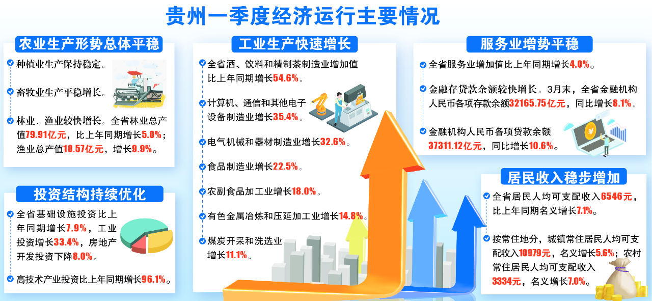 今年以来,我省坚持以高质量发展统揽全局,坚持稳字当头、稳中求进,全力围绕“四新”主攻“四化”,统筹疫情防控和经济社会发展,全省经济运行呈现开局平稳、结构趋优、质效提升的良好态势,农业生产形势总体平稳、特色农产品产量增长较快,工业生产快速增长、企业效益持续向好,服务业增势平稳、部分行业增长较快,投资结构持续优化、新兴产业投资快速增长,市场销售保持增长、网上销售较为活跃,进口实现较快增长、出口降幅有所收窄,财政收入平稳增长、民生支出保障有力,就业形势总体平稳、居民收入稳步增加,实现了一季度“开门稳”。