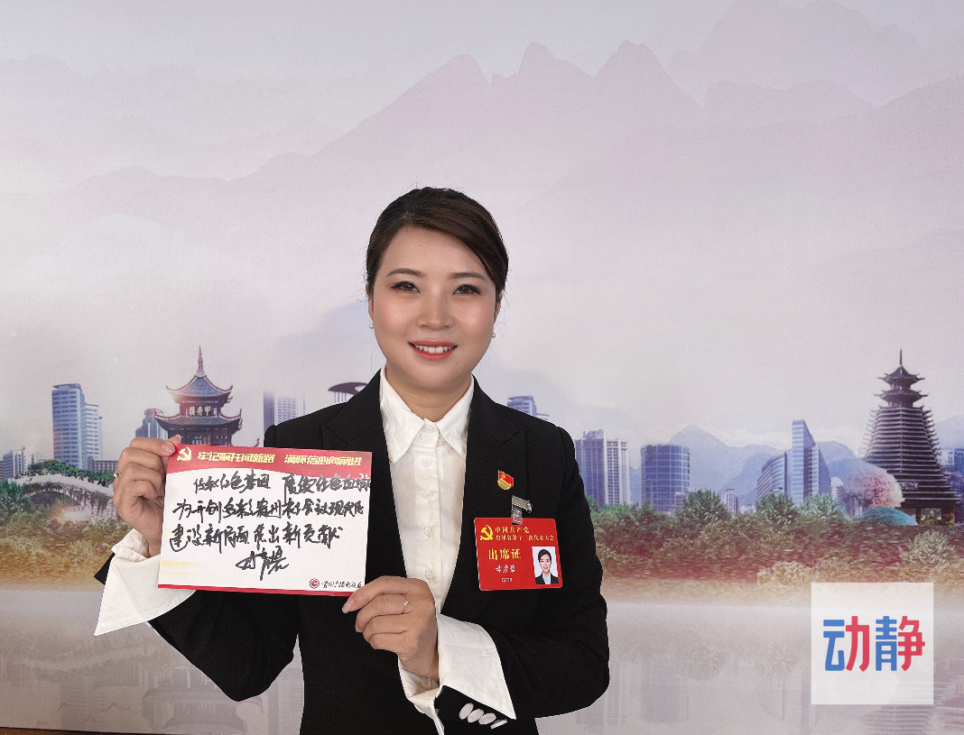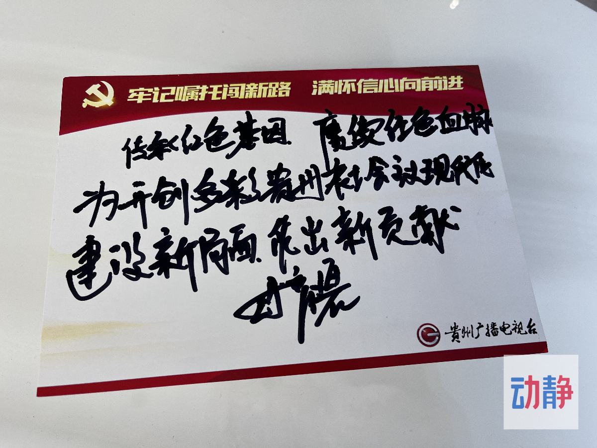 省党代会代表、遵义市习水县四渡赤水纪念馆党组副书记母彦碧写下:“传承红色基因,赓续红色血脉,为开创多彩贵州社会主义现代化建设新局面作出新贡献。”