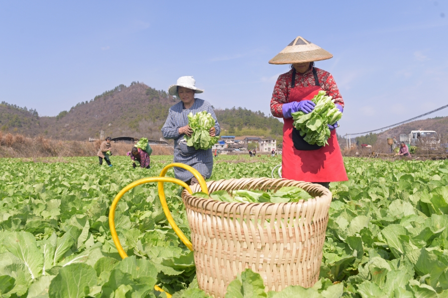 时下,黔东南州岑巩县天马镇白岩坪坝区种植的200亩白菜薹迎来采收期,50多名村民抢抓农时,在田间忙着采收、装运,供应市场需求。