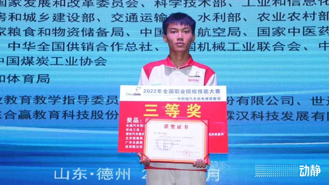 此次获奖的赵金富出生于2004年7月28日,现就读于瓮安县中等职业学校汽修运用与维修专业2002班。该同学在校期间勤奋学习、苦练技能,表现优秀,多次参加技能大赛并获奖。2021年11月获黔南州职业院校技能大赛暨贵州省职业院校技能大赛“汽车机电维修”项目一等奖,2022年5月获贵州省职业院校技能大赛“汽车机电维修”项目二等奖,2022年8月获全国职业院校技能大赛“汽车机电维修”项目三等奖,2022年9月获校级三好学生。2022年12月获黔南州职业院校技能大赛暨贵州省职业院校技能大赛“汽车机电维修”项目一等奖。