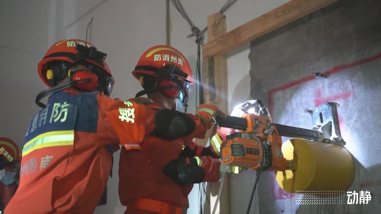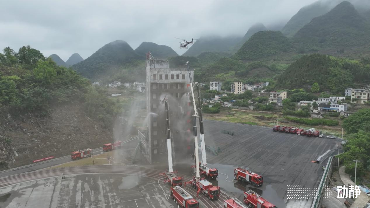 “此次演练共调集了1300余人,196辆车辆参与。我们设置了高空作业、水域救援等15大类科目的内容,主要是检验平战一体化的作战指挥体系和提升队伍应对大地震灾害的实战救援能力。”贵州省消防救援总队灭火救援指挥部副部长孟吴恒说。