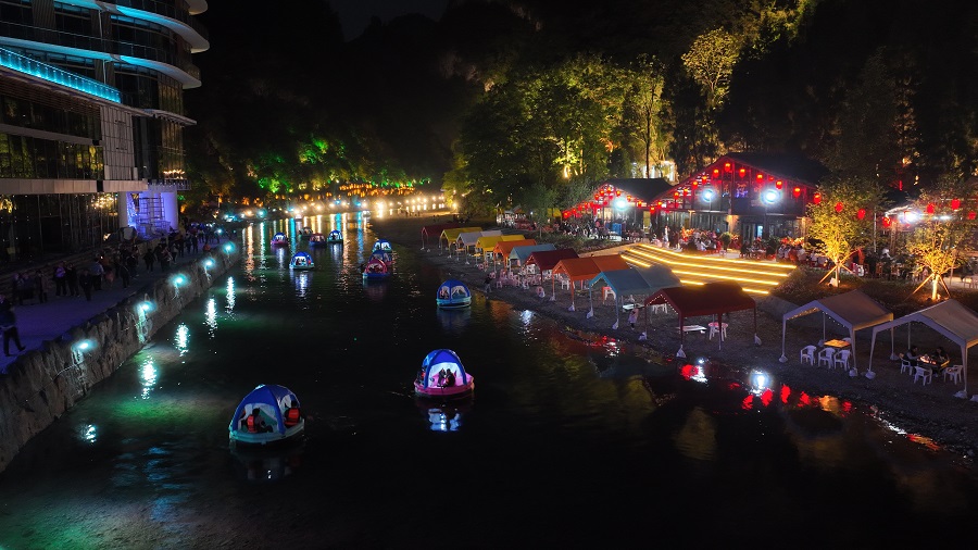 今年4月23日,杉木河夜漂景区开始试运营以来,浪漫夜漂、玻璃悬廊、全景灯光等新兴旅游业态备受游客欢迎,吸引了各地游客前来打卡游玩。