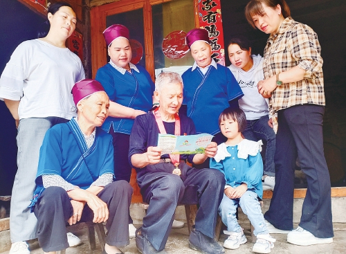 近日,贵州省黄平县的村寨院落涌现出一支支由离退休党员干部组成的生态文明志愿服务队。他们与驻村工作队和村“两委”一道,进村入户,宣传垃圾分类,引导村民开展环境卫生整治,成为建设美丽乡村的一道亮丽风景线。图为76岁的退休老党员罗永祥(前排中)在野洞河镇仁里村向寨子里的父老乡亲宣讲环保知识。