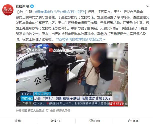 近日,江苏南京,王先生听说自己母亲徐女士突然向亲朋好友借钱,于是立即拨打母亲的电话,发现被设置了呼叫转移,通过监控又发现其母亲匆忙离开了小区。王先生怀疑母亲遭遇了诈骗,于是报警求助。民警急中生智,提醒王先生可以将母亲的电话办理停机,中断与骗子的联系。大约6小时后,民警找到了吓得瑟瑟发抖的徐女士。原来,当天她接到电话称其涉嫌洗钱,需缴纳10万元保证金。幸好停机及时,徐女士保住了这笔钱。
