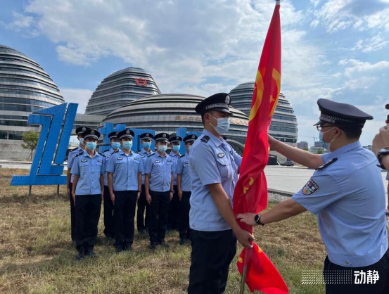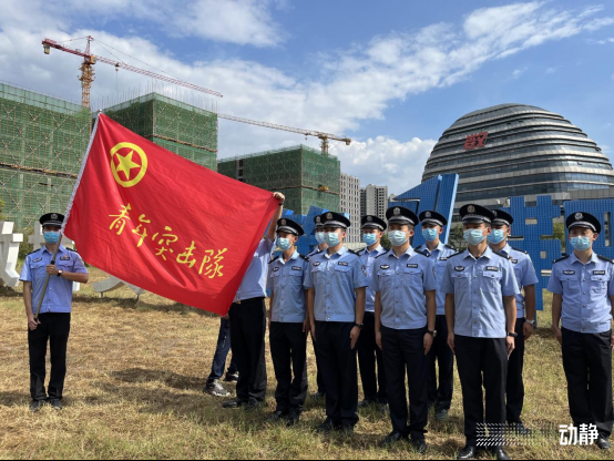 9月5日,包括瞿文枫在内的11名平均年龄仅22岁的青年民警,在贵阳市公安局经开区分局的授旗下,成立起青年突击队,就地转化为投身一线的先锋力量,参与经开区19个封控执勤点的疫情防控。