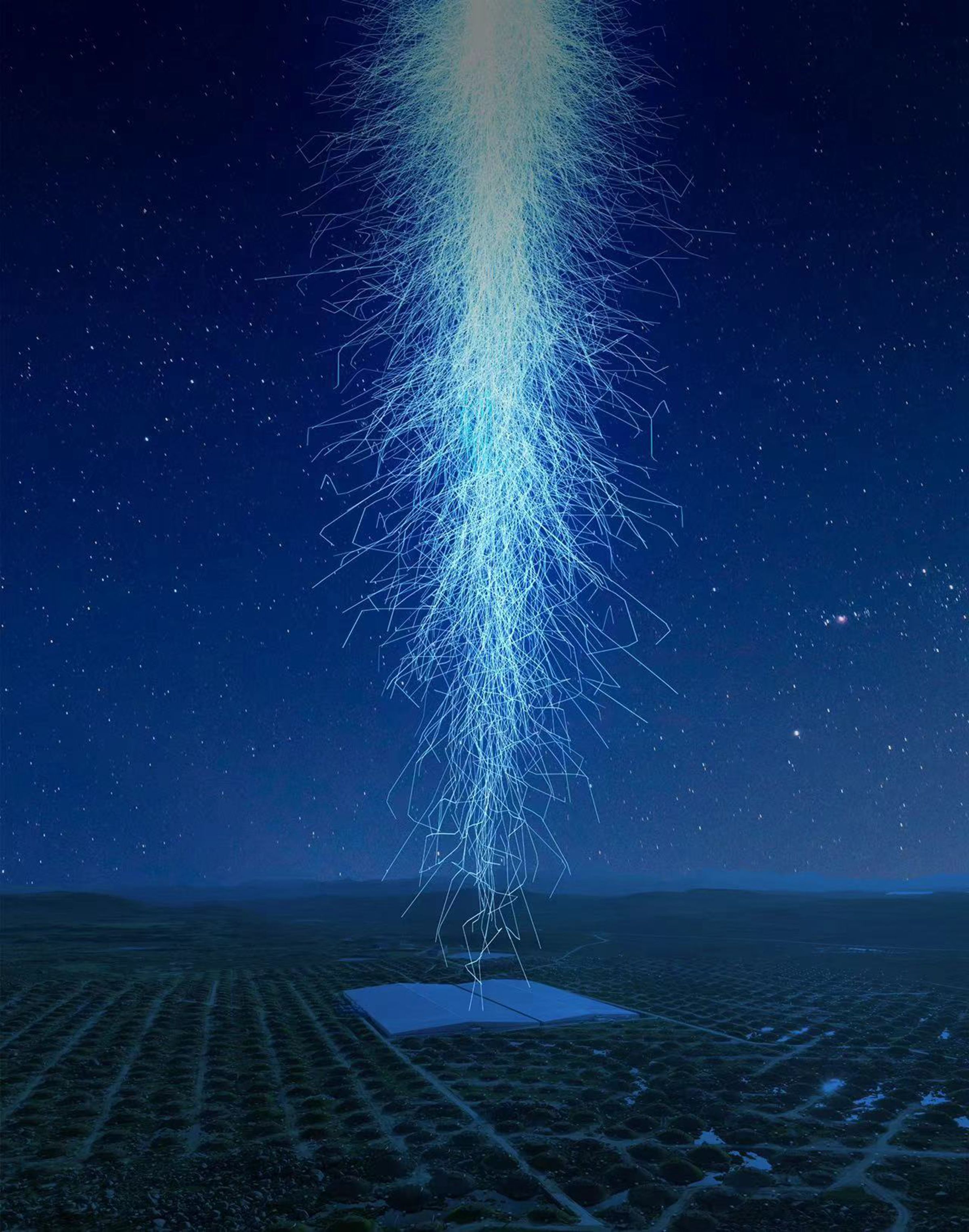 约20亿年前,一颗比太阳重20多倍的“超级太阳”大质量恒星燃烧完其核聚变燃料,瞬间坍缩引发巨大的爆炸火球,发出了一个持续几百秒的巨大“宇宙烟花”伽马射线暴。火球与星际物质碰撞产生的大量万亿电子伏特高能伽马光子穿过茫茫宇宙,径直飞向地球,于2022年10月9日晚上21时20分50秒抵达“拉索”的视场范围,6万多个伽马光子被“拉索”收集到。经过几个月的分析,科学家们终于揭开了这场爆炸事件的面纱。
