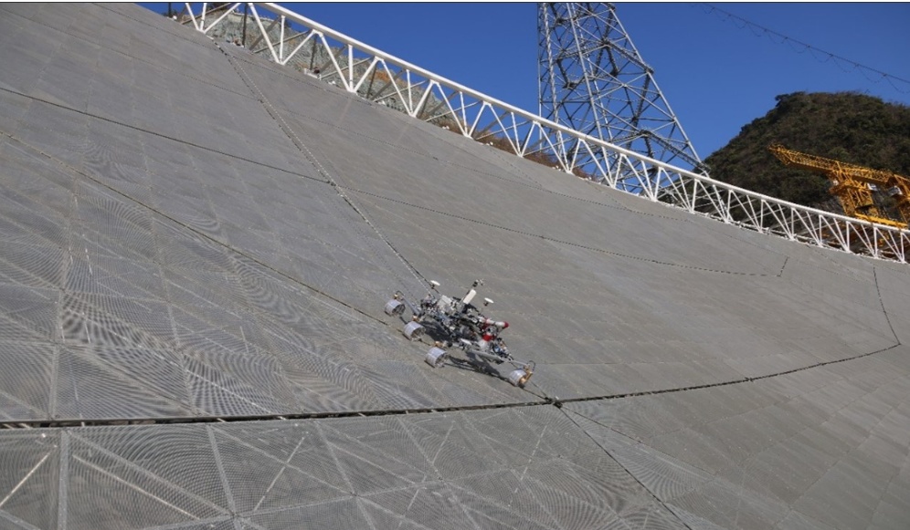 项目组表示,经过现场实际环境的适应性调试后,该机器人已成功应用于FAST反射面激光靶标的更换维护,将有力解决此前存在的高危作业风险隐患、人工维护效率低下、气候条件制约观测等问题,极大提升FAST维护作业的效率和安全性。