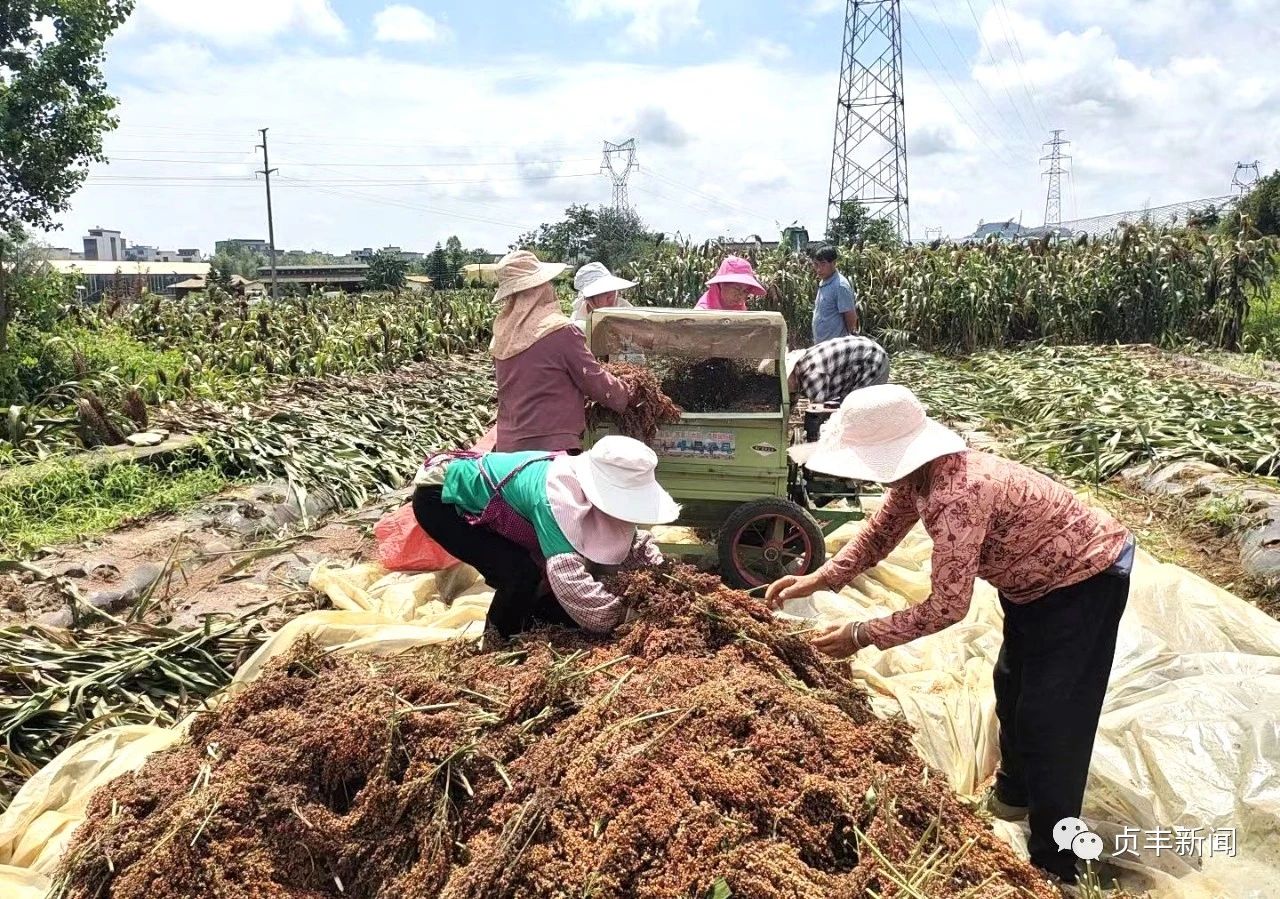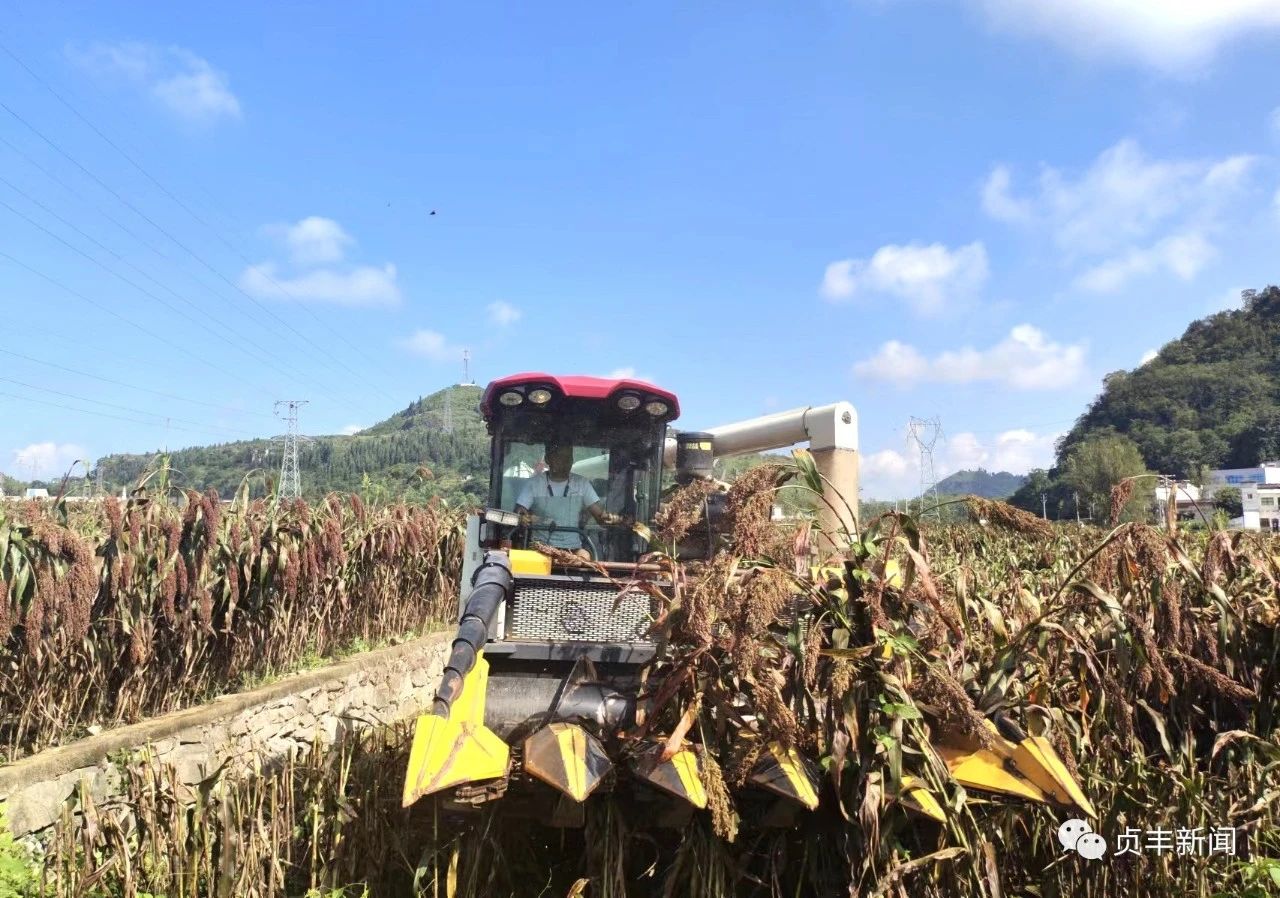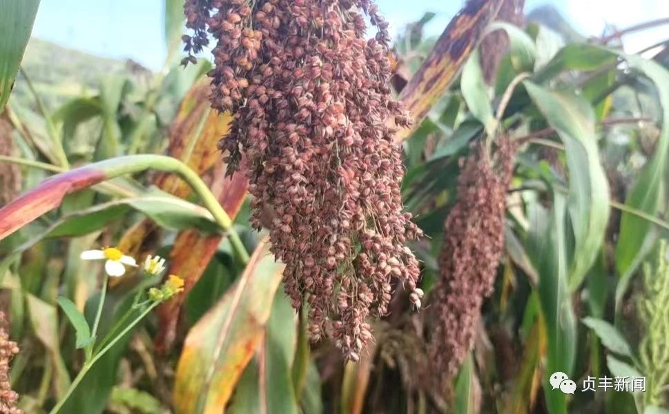 金秋八月,黔西南州贞丰县2.3万亩高粱陆续迎来采收,田间地头,一株株颗粒饱满的高粱穗压弯了枝头,群众抢抓农时采收高粱,确保颗粒归仓。