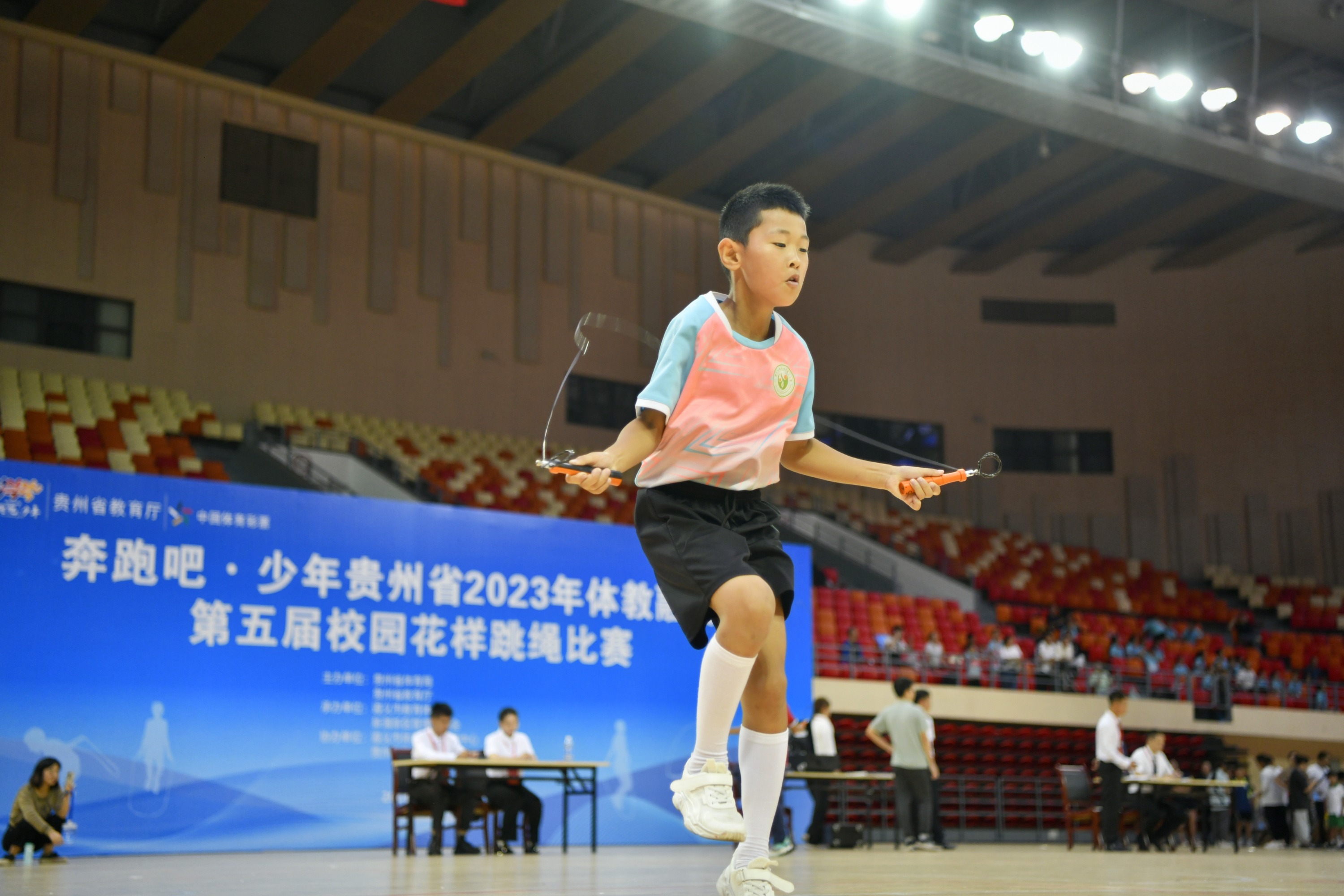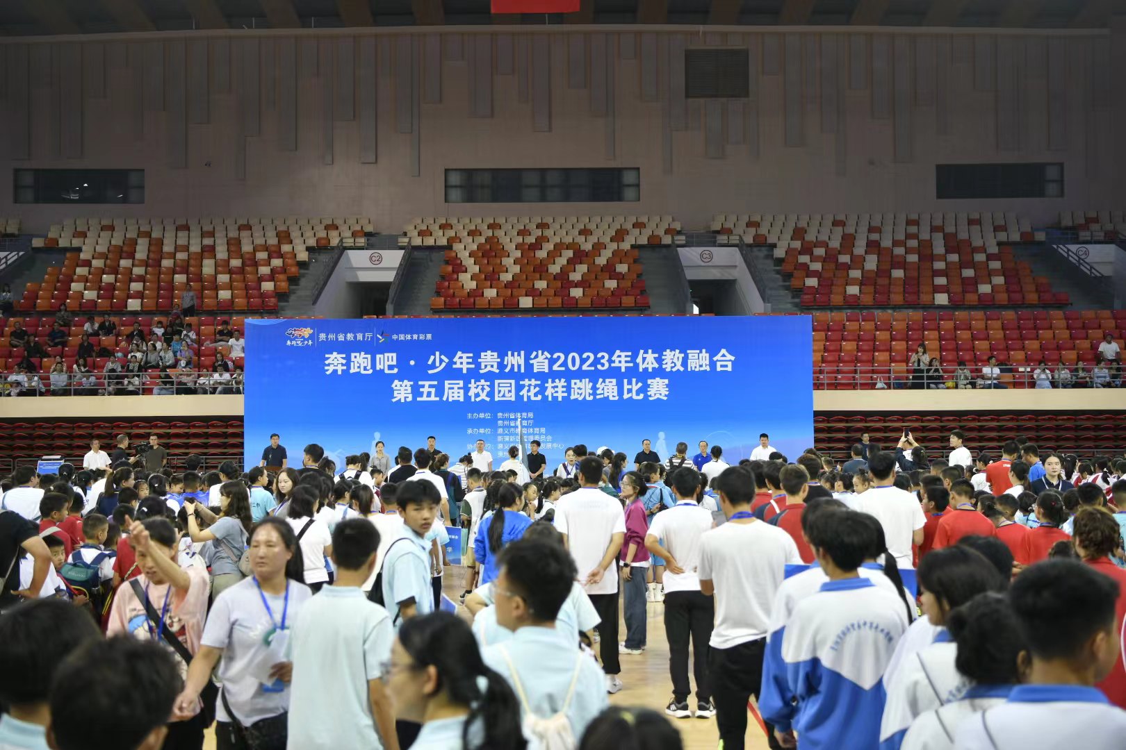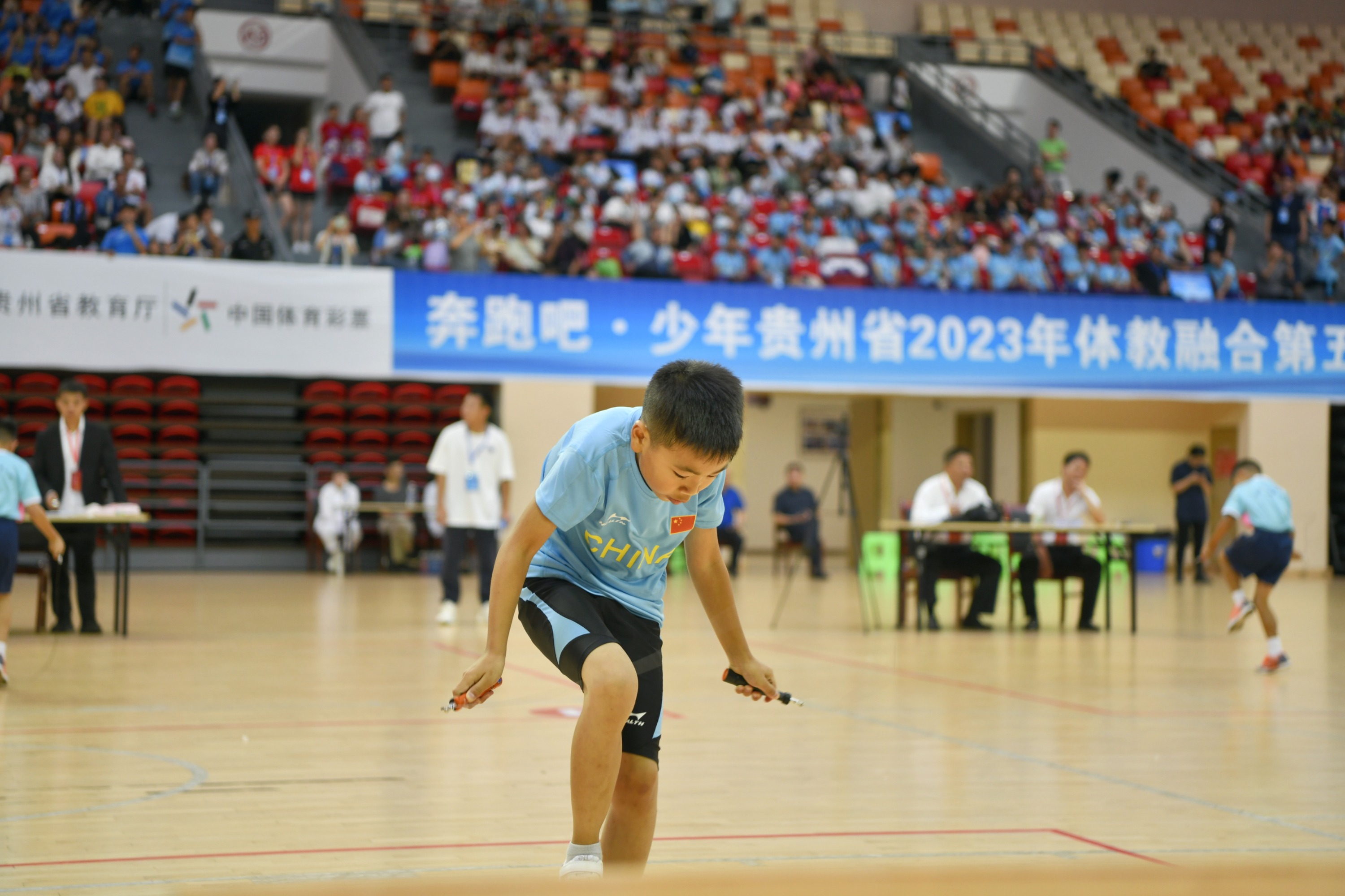 9月21日,“奔跑吧·少年”贵州省2023年体教融合第五届校园花样跳绳比赛在遵义市奥体中心开赛,来自全省各市(州)143支代表队共1700余名运动员参加,比赛为期3天。