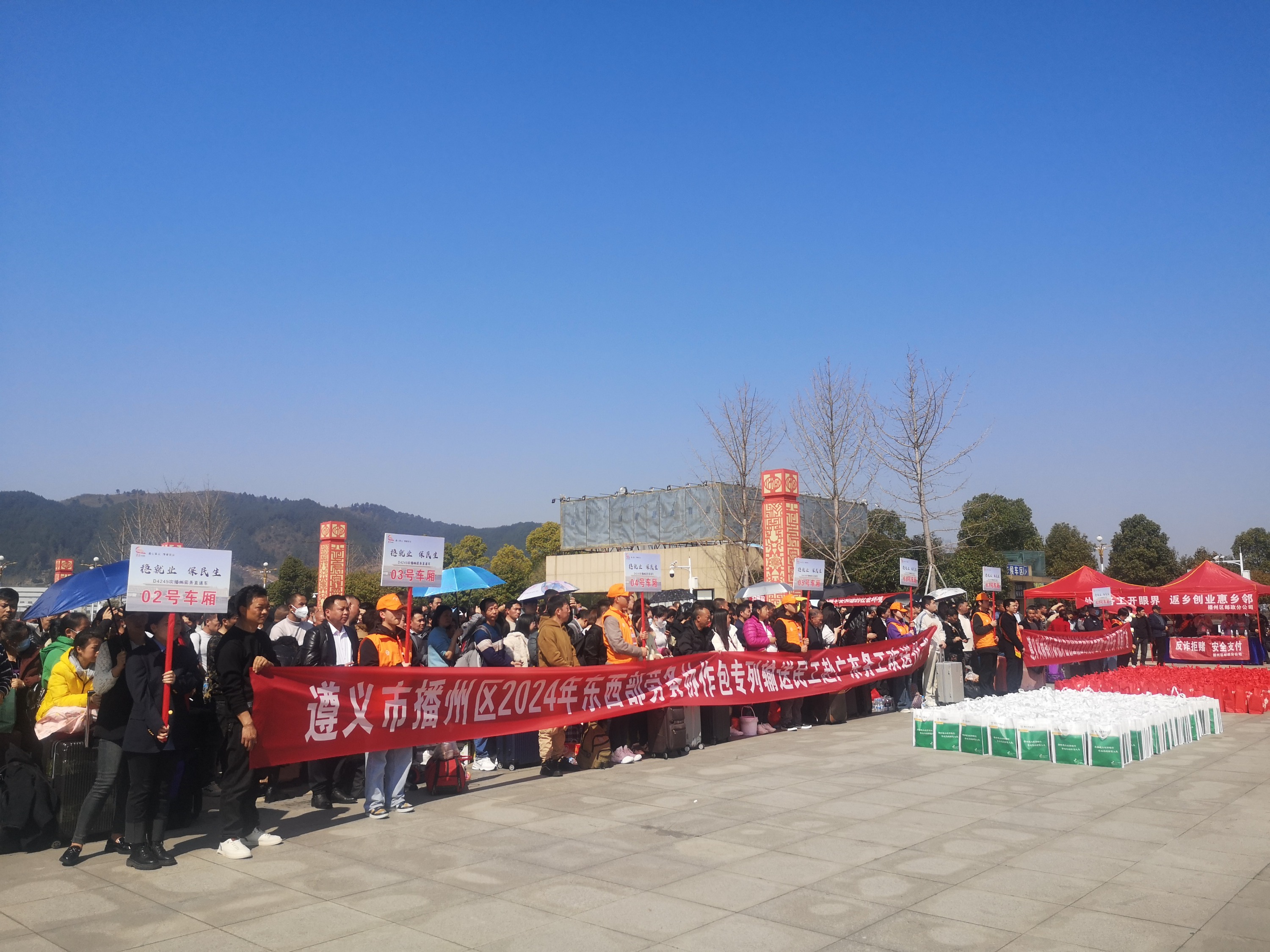2月17日,遵义市播州区组织免费返岗专列,将600余名辖区务工人员免费送到广东省返岗务工。