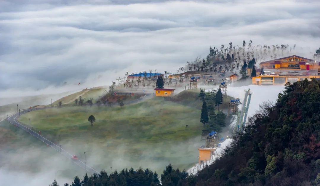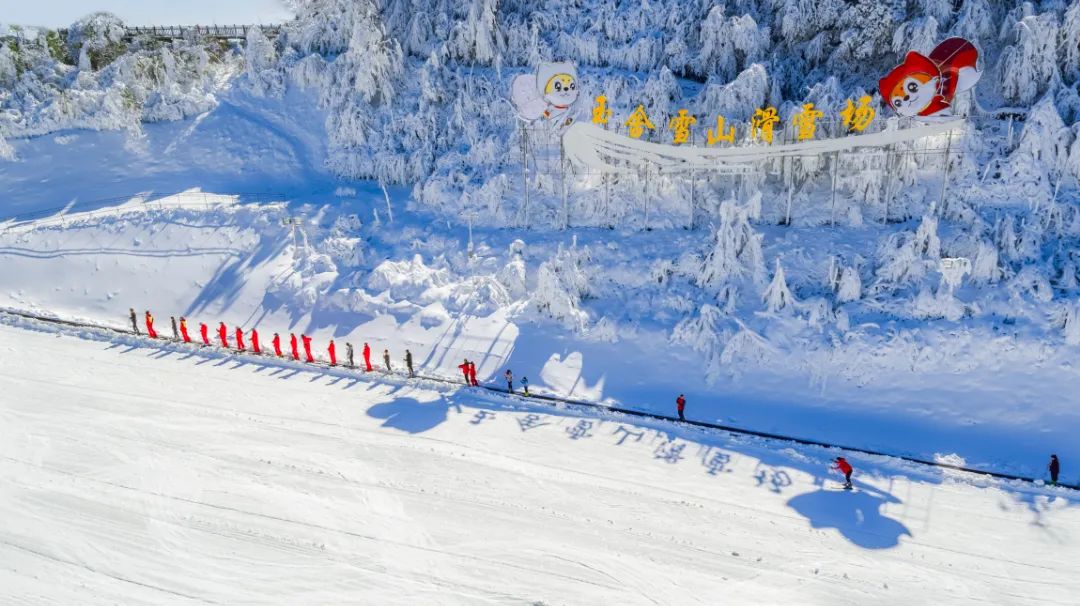 玉舍国家森林公园滑雪场位于国家4A级景区玉舍国家森林公园内,因纬度低于北半球纬度最低、海拔最高的云南玉龙雪山约1°,从而成为中国纬度最低的滑雪场。滑雪场建成以来,从最初的2万平方米扩大到5万平方米,能同时接待2000人,日接待量可达6000人次,吸引游客超过20余万人次。