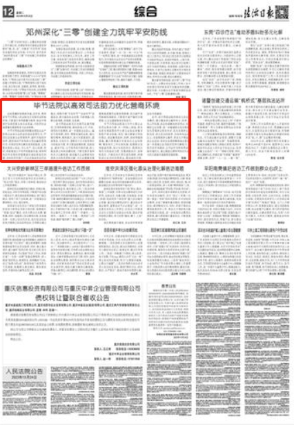 法治是最好的营商环境。近年来,贵州省毕节市两级人民法院充分发挥司法职能作用,不断提升审判质量与效率,依法平等保护各类经营主体合法权益,为经济社会高质量发展提供有力法治保障。