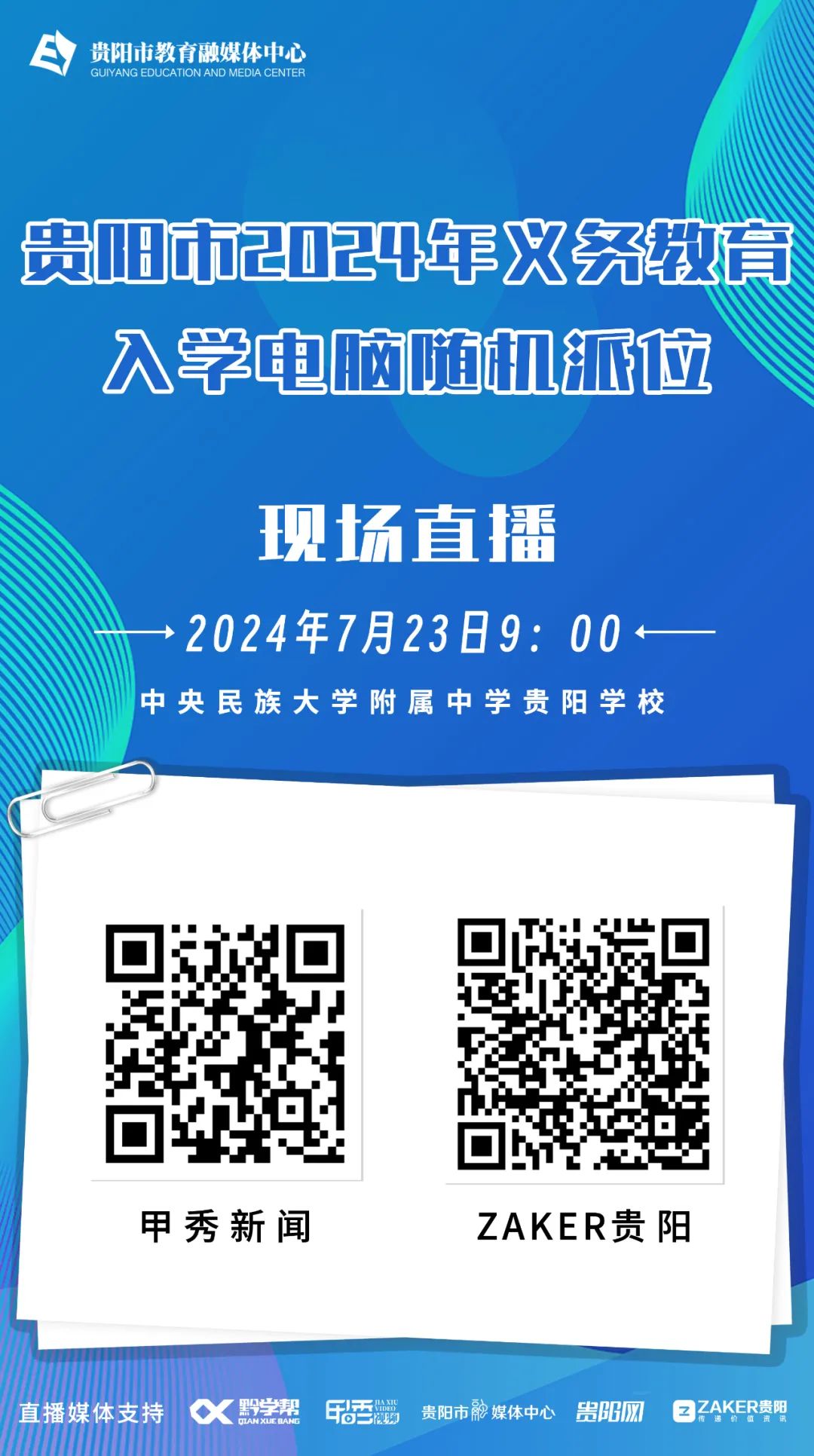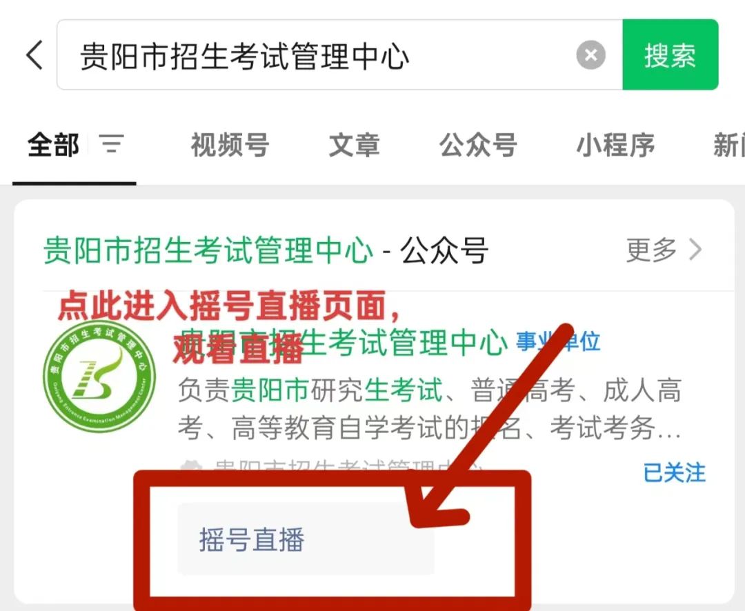 可通过“贵阳市招生考试管理中心”公众号观看直播