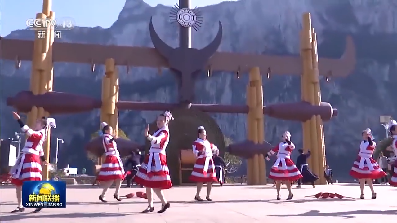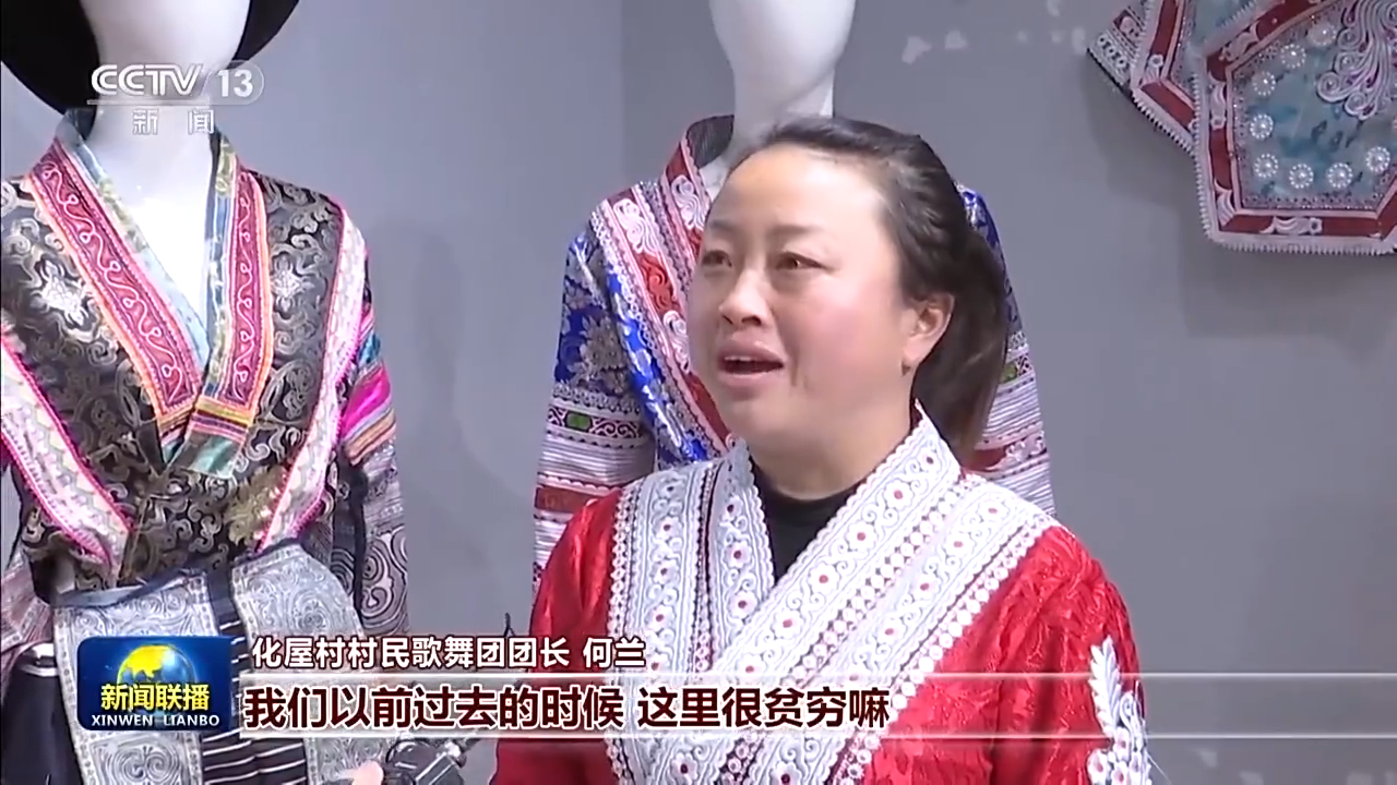 化屋村村民歌舞团团长何兰说“:为什么选择红色呢?我们以前过去的时候,这里很贫穷嘛,现在的话就是不一样了,每家每户都腰包鼓起来了,感觉到是很开心的,到过年了就是红红火火的嘛。”