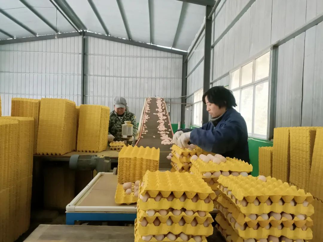闵孝金羽禽业养殖专业合作社负责人潘习武介绍道。“目前我们厂有三栋厂房,每栋厂房每天能有五万枚鸡蛋出栏,合计每天有15万枚鸡蛋。目前有三十个固定工人,每人每月有大约2500-3500元的工资,忙碌的时候会聘请20-40人的临时工来帮忙。”