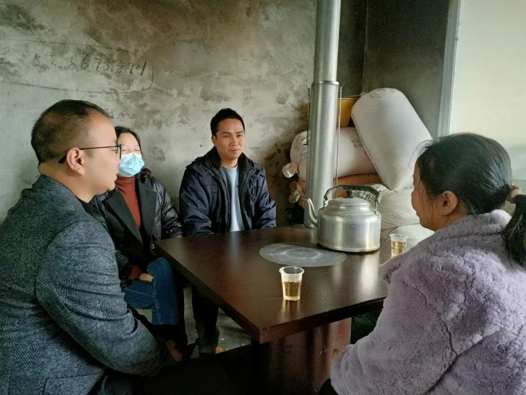 在闵孝镇双屯村村民杨政江的养牛基地里,镇政府工作人员正在对他家养牛基地发展情况进行回访。杨政江于2019年自主发展养牛产业,由于缺乏技术,亏损严重,当地网格员在巡察中发现这一情况后,立即上报,经镇村两级干部入户认真核实、村级民主评议、党委综合研判、县级仔细核定后,杨政江家被及时纳入监测对象。