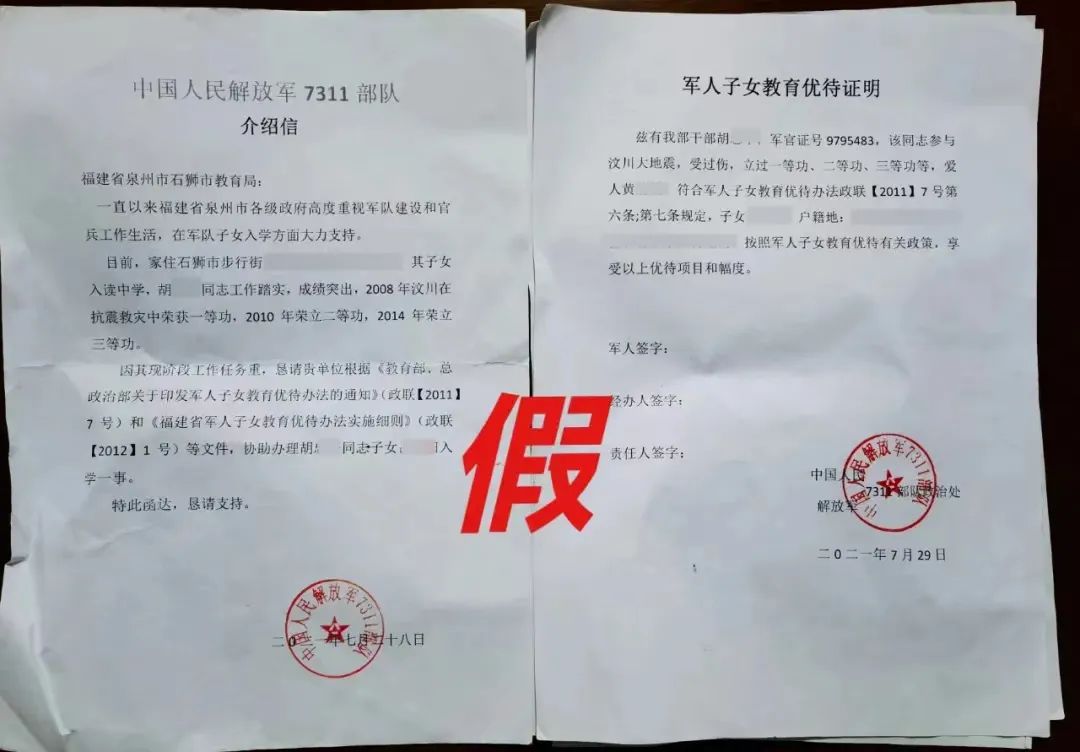 伪造的公章、军官证和文件