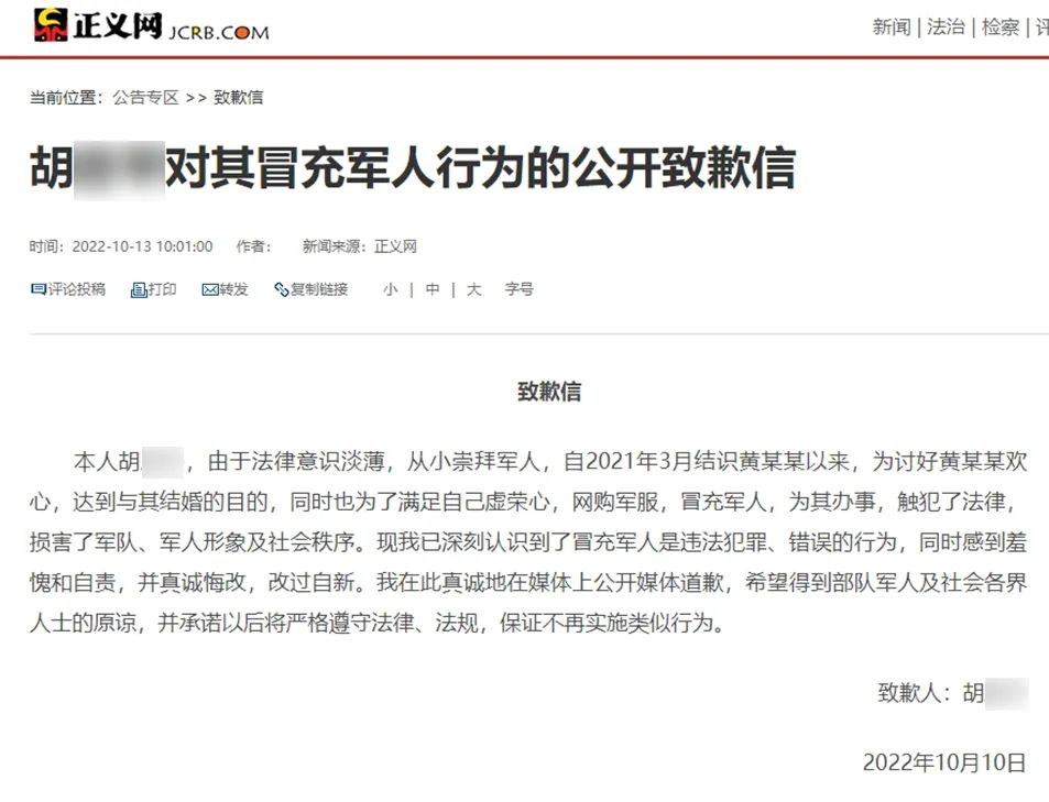 男子胡某穿假军服冒充营长