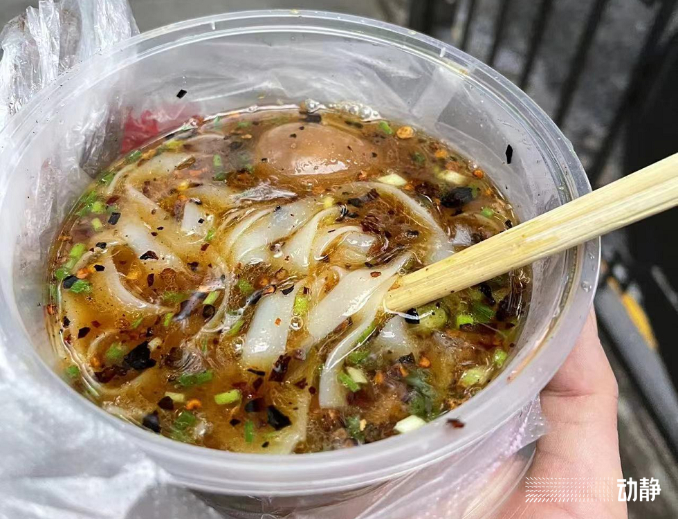 说实话,不能堂食,很多食物尤其是粉面一类,不免欠缺些气氛,损失些味道。一次性餐具包装好带回家再吃,久泡则沱,汤水也温吞,毫无吃头,所以我向来不喜欢点外卖,总觉得跟现煮现食的热乎劲没法比。还有一个选择是蹲在店铺门口趁热吃,狼狈是狼狈些,不顾体面却可以顾全滋味。