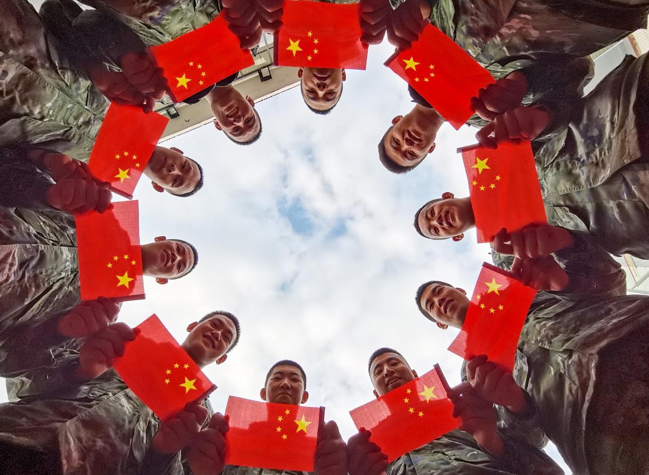 活动中,官兵们通过举行升国旗仪式、唱响《歌唱祖国》《我和我的祖国》红色歌曲、与国旗同框合影等活动,表达对祖国母亲的热爱。