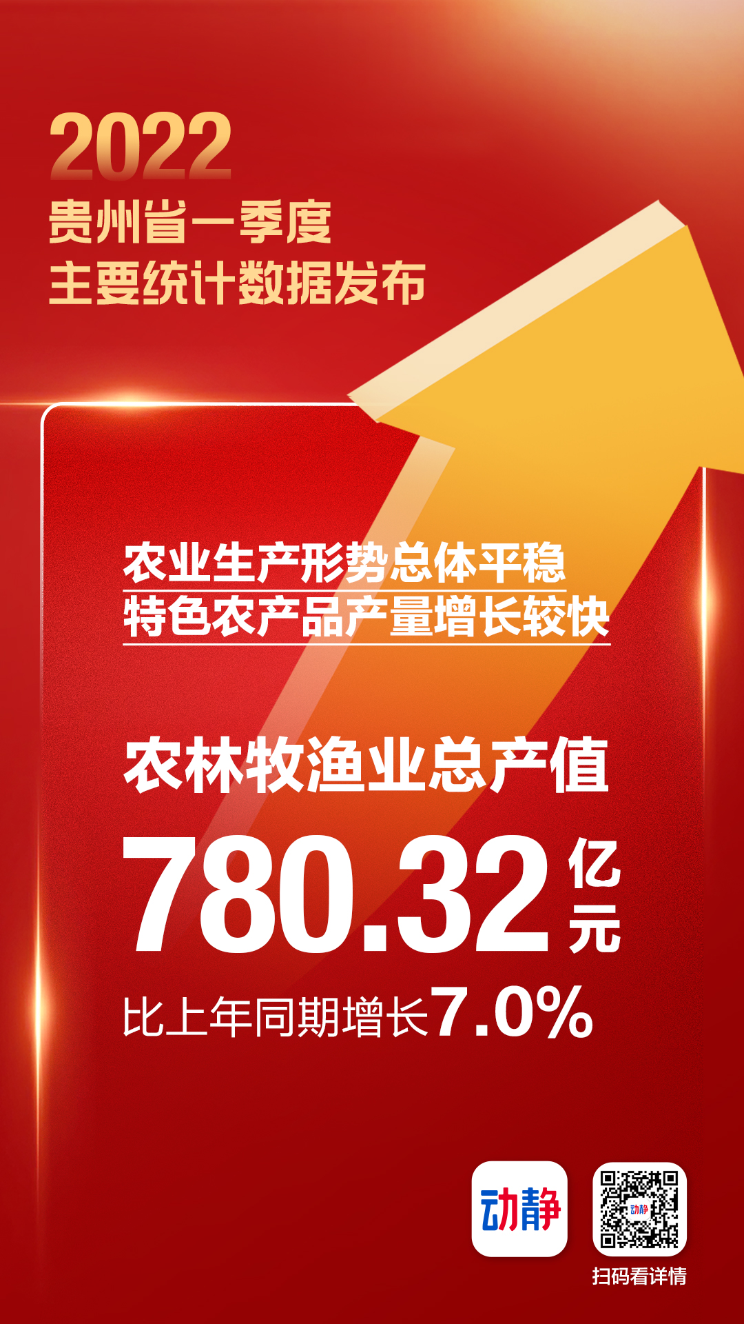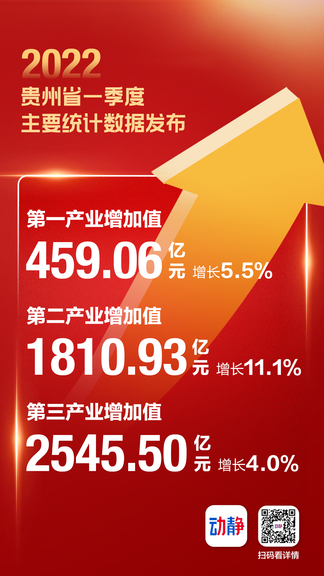 今天(4月20日)上午,贵州省政府新闻办举行新闻发布会,发布2022年一季度全省主要统计数据。数据显示,全省地区生产总值(GDP)4815.49亿元,比上年同期增长6.6%,第一、二、三产业增加值和去年同期相比,均有不同程度增长。数据表明,贵州坚持以高质量发展统揽全局,坚持稳字当头、稳中求进,全力围绕“四新”主攻“四化”,统筹疫情防控和经济社会发展,一季度全省经济运行呈现开局平稳、结构趋优、质效提升的良好态势,实现了“开门稳”。