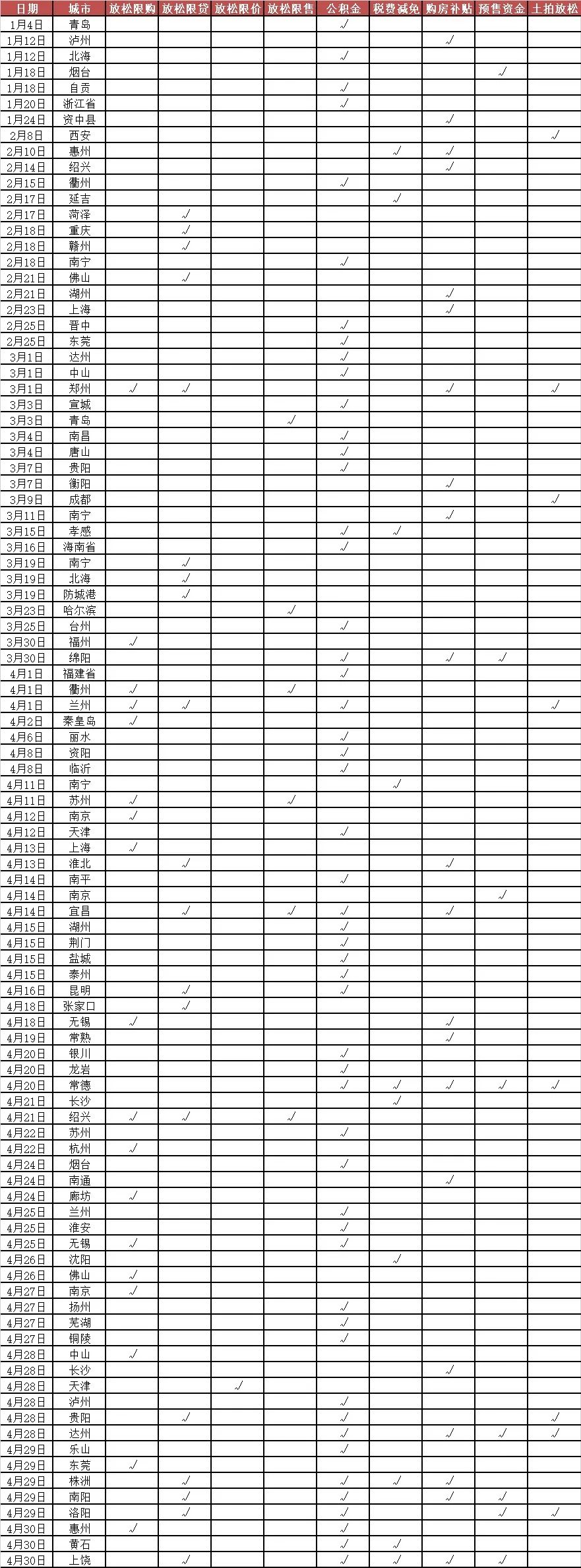 奥密克戎疫情突袭叠加楼市低迷大背景,前4月,83省市出台115次放松政策,南京、苏州等强二线城市跟进放松限购,南宁、沈阳等弱二三线城市财税刺激托市。