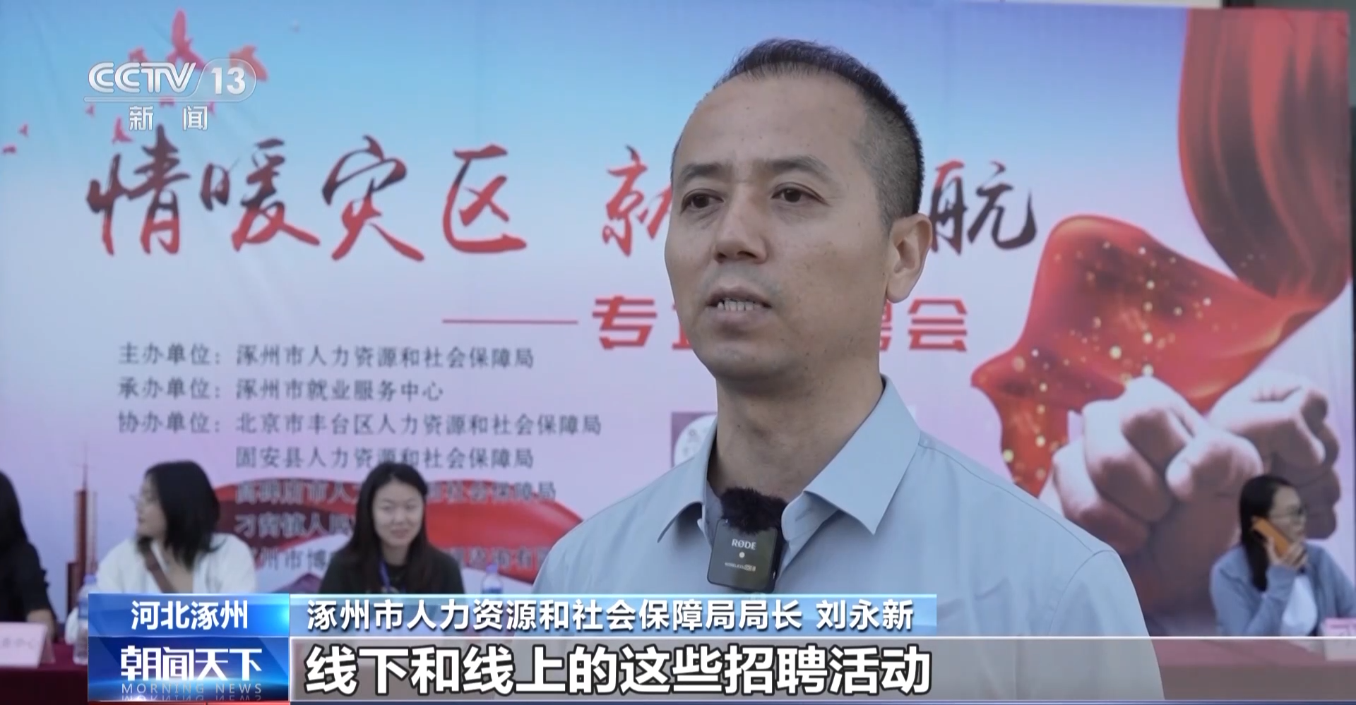 涿州市人力资源和社会保障局局长刘永新:我们就是想持续地组织线下和线上的这些招聘活动,通过这一系列的活动,更多给群众提供一个就业的机会,助力群众灾后重建。