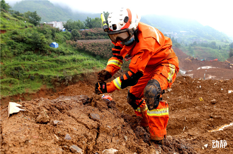 2019年7月23日,六盘水市水城县鸡场镇坪地村岔沟组发生一起特大山体滑坡灾害。吴兴谦所在的救援队伍准备进入现场的必经之路被一条河流阻断,小桥已经被泥沙冲垮,他们必须从河流上游比较湍急的地方涉水前行。到达现场后,吴兴谦被安排到侦查搜救组,在利用生命探测仪发现到有微弱的生命迹象后,为了保障安全,他放弃了大型器械,改用手刨,手套破了、手皮破了、指甲也翻裂了……在连续3个多小时的紧张救援后,被困者终于被顺利救出。