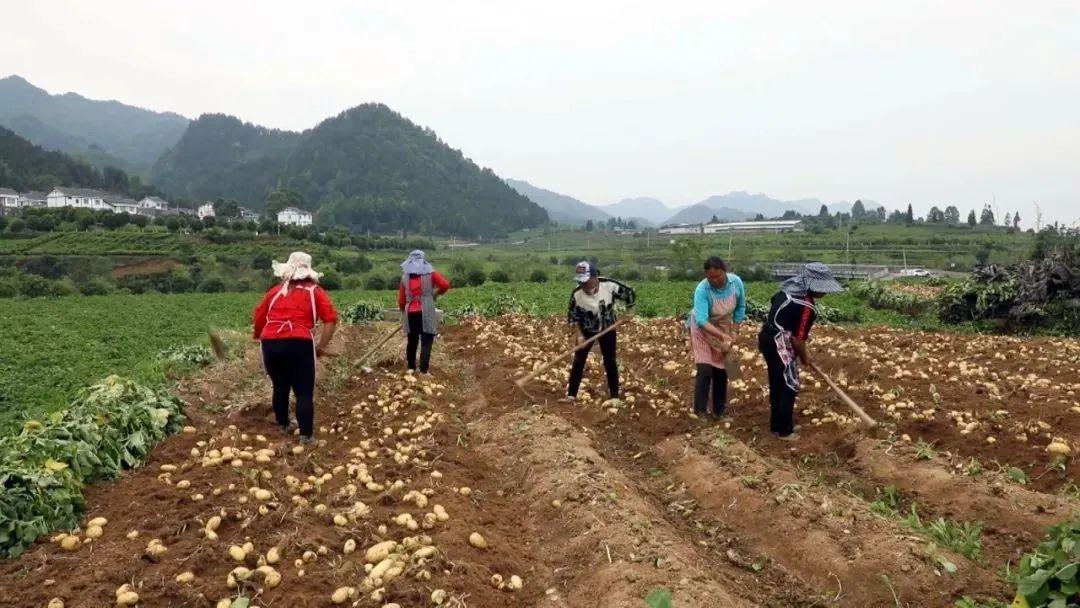 近段时间以来,遵义市凤冈县土溪镇种植的2000多亩马铃薯迎来丰收季。田间地头一派繁忙,村民们头顶烈日忙着采收马铃薯。