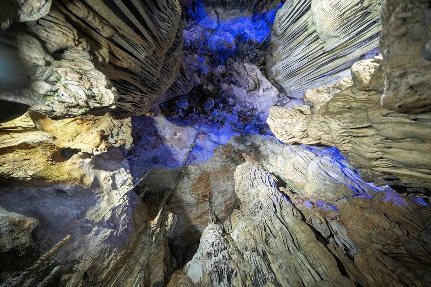 “地下塔林”“铁山云雾”“寂静群山”“百尺垂帘”……走进贵州省毕节市织金县官寨乡织金洞景区,石钟、石乳、石笋、石幔、石树、石瀑等四十多种洞穴堆积物岩溶景观千姿百态,令人叹为观止。
