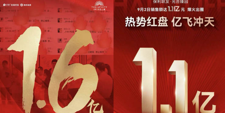 9月2日,央企保利发展在上海的两个楼盘均达到了成交额过亿,其中一个楼盘成交额达1.6亿元,另一个成交额达1.1亿元。