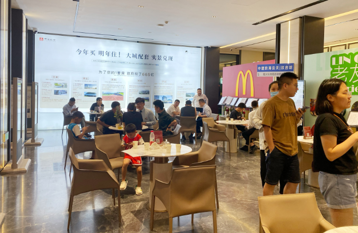 9月2日晚间,澎湃新闻走访位于上海临港的中建玖海云天项目,虽然已至晚上8点,但售楼处依然人来人往。