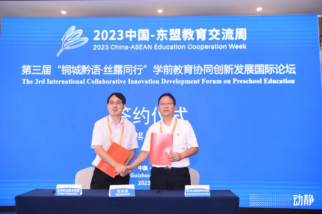 开幕式上,铜仁幼儿师范高等专科学校分别与深圳大学、金华职业技术学院、上海市人口早期发展协会、意大利树人国际教育集团签定合作框架协约,就产教融合、校企合作等方面进行深度探索合作,围绕适应行业需求的复合型技能人才培养,推进教育教学机制创新,探索校企协同育人培养模式。