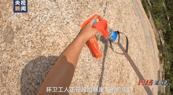 悬崖峭壁间,也有垃圾。华山景区管理公司五云峰管理站站长杨琦告诉总台记者,这里的垃圾主要来源有两种:一是风刮,二是游客丢弃。