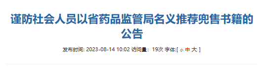今天(8月14日),记者从贵州省药品监督管理局网站了解到,近期,有企业反映有社会人员以省药品监管局的名义向药品、化妆品及医疗器械企业推荐兜售法规类书籍。公告全文如下: