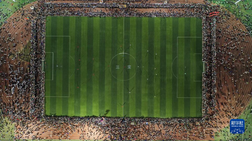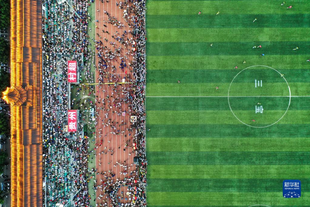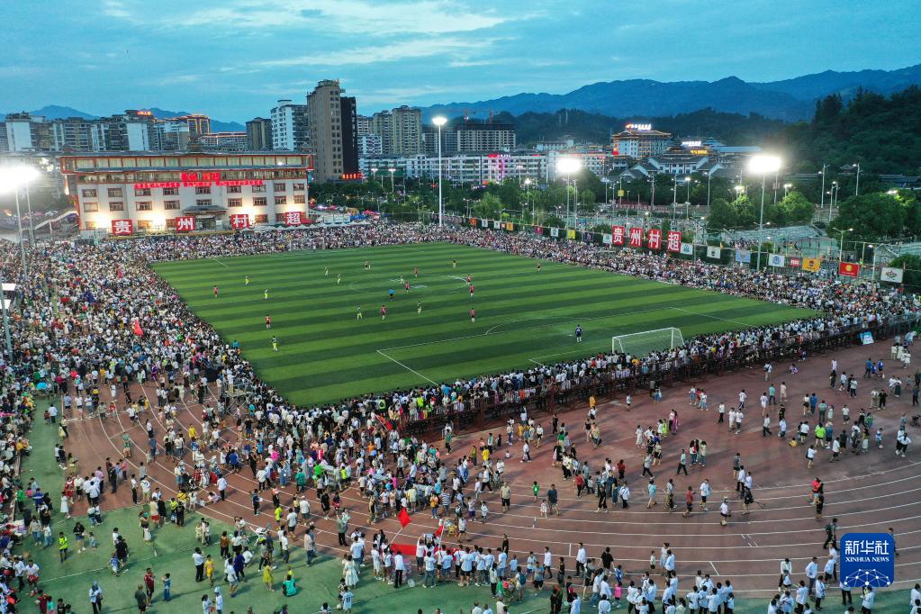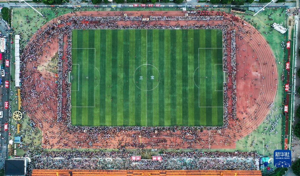 6月10日拍摄的贵州“村超”足球比赛现场(无人机照片)。新华社记者 杨文斌 摄