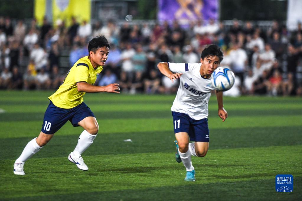 6月9日,凤凰村足球队与新中村足球队在“村超”比赛中。新华社记者 杨文斌 摄