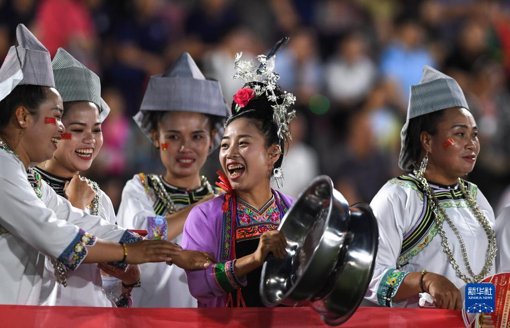 6月9日,少数民族村民为球队助威。新华社记者 杨文斌 摄