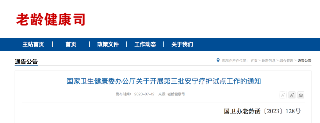 根据《中共中央 国务院关于加强新时代老龄工作的意见》关于“稳步扩大安宁疗护试点”的要求,在前两批安宁疗护试点工作的基础上,我委决定继续扩大试点范围,自本通知印发之日起在全国开展第三批安宁疗护试点工作。现将有关事项通知如下。