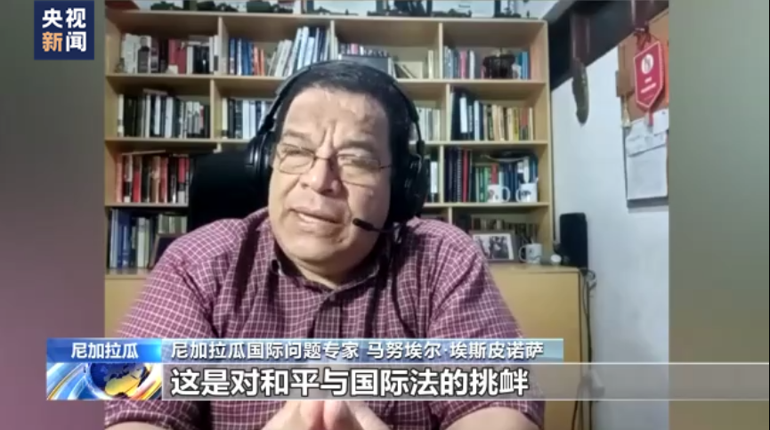 尼加拉瓜国际问题专家 马努埃尔·埃斯皮诺萨:我认为美国政府的这一行为是非常不负责任的,也是非常鲁莽的。这是对和平与国际法的挑衅,对各国和平共处的挑衅。基于当前情况,我认为美国此举既挑衅了全球安全,也没有做到像《联合国宪章》要求的那样,推动维护国际和平局势。