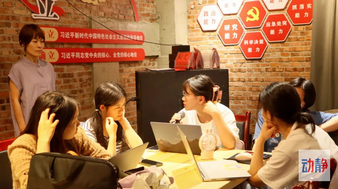 “我们组去采访了百岁老人,他们很热情,身体很是硬朗。”“我们还去了十里荷廊拍了很多好看的照片。”……牛蹄关夜间的博物馆公共空间里,参与实训的学生兴奋地分享自己一天的所见所闻。