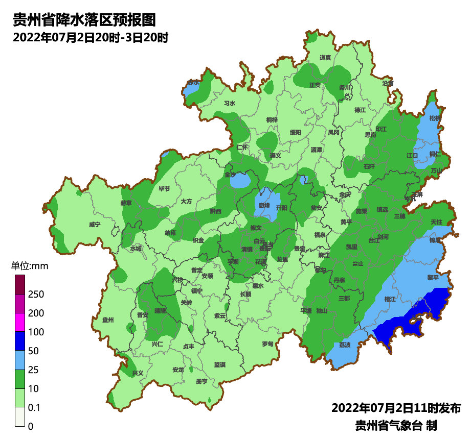 今天夜间到明天白天,省的东部地区多云转阴天有阵雨或雷雨,局地有中到大雨,东南部部分乡镇有暴雨,其余地区阴天间多云有阵雨或雷雨,个别乡镇有大到暴雨;