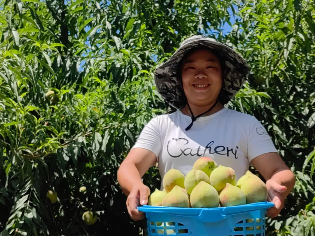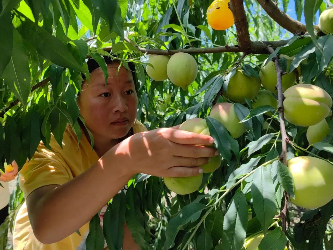 “我特意过来采摘鹰嘴蜜桃,去年尝过后就对这个味道念念不忘 ,老人小孩都爱吃,今年又来摘回去送给亲戚朋友尝尝。”游客郑玉莹说。
