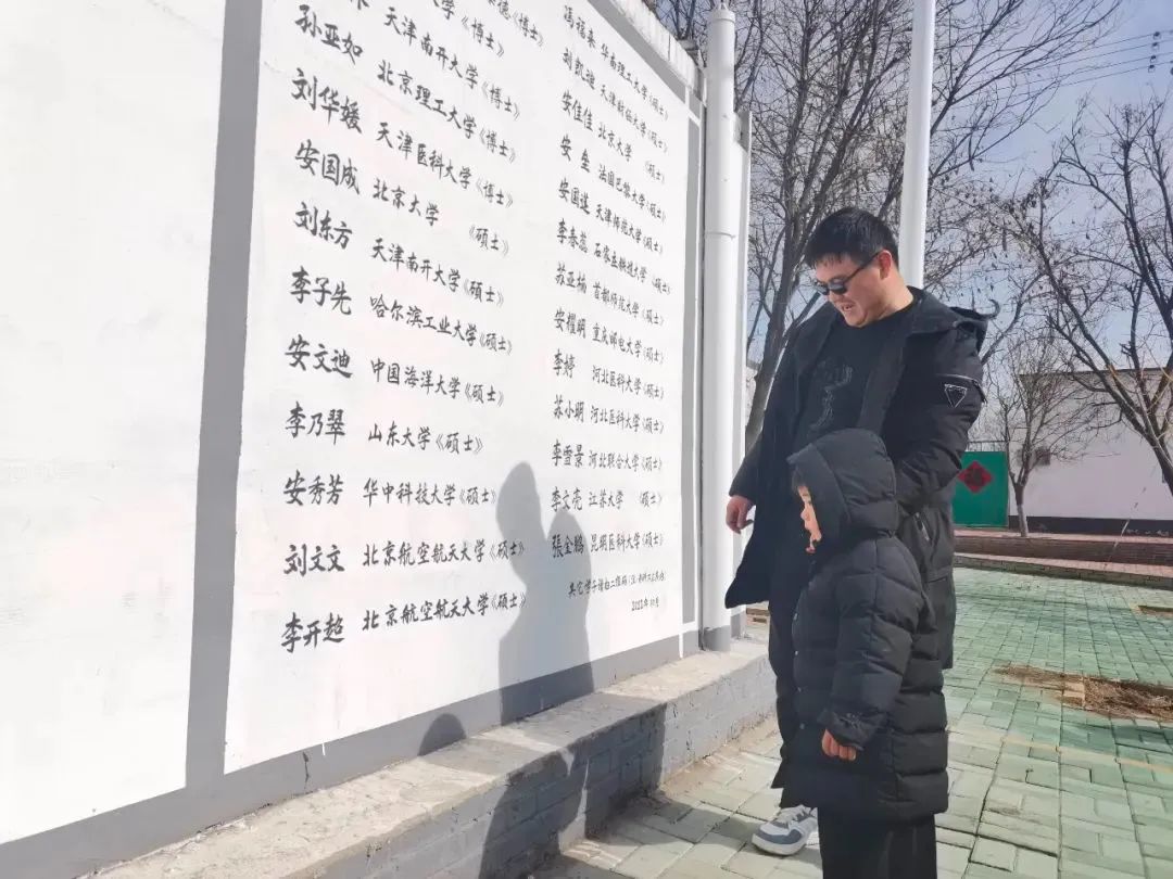 村民赵松利指着“学霸墙”上的名字