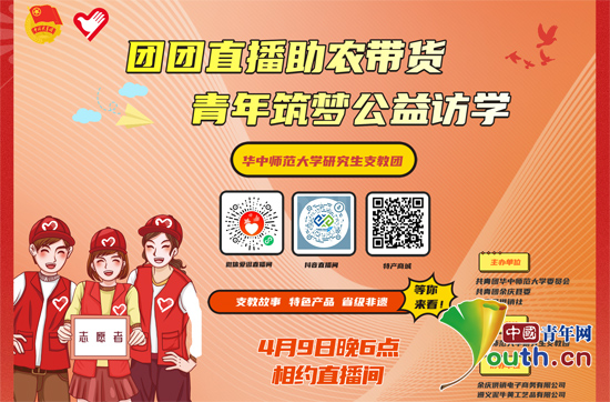 “直播间的各位友友们,大家晚上好!欢迎大家来到我们的公益带货直播间,我们是华中师范大学第24届研究生支教团余庆分队!”近日,随着聚光灯亮起,直播键按下,华中师范大学研究生支教团“团团直播助农带货·青年筑梦公益访学”公益直播正式开播。