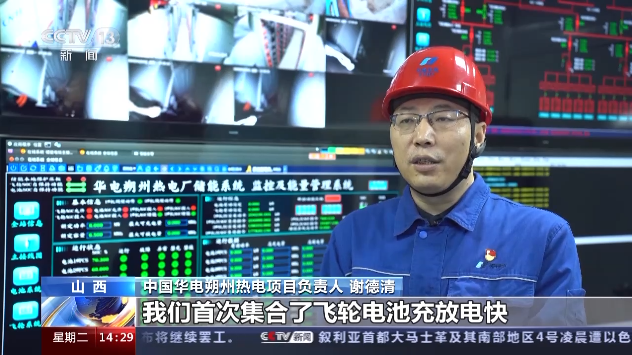 中国华电朔州热电项目负责人 谢德清:我们首次集合了飞轮电池充放电快和锂电池耐用的优势,既扩大了系统总容量,又提高了电池的持久性,它的设计可充放电次数比纯锂电池系统高出2000倍,同生命周期内可节省3批锂电池组的更换费用约2400万元。