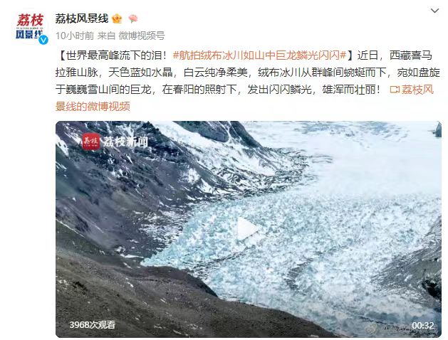 【世界最高峰流下的泪!航拍绒布冰川如山中巨龙鳞光闪闪】近日,西藏喜马拉雅山脉,天色蓝如水晶,白云纯净柔美,绒布冰川从群峰间蜿蜒而下,宛如盘旋于巍巍雪山间的巨龙,在春阳的照射下,发出闪闪鳞光,雄浑而壮丽!
