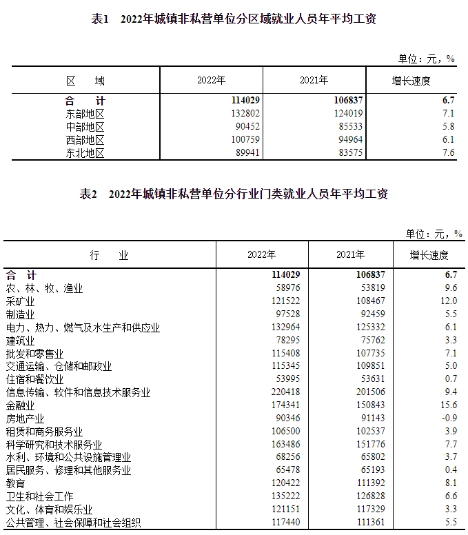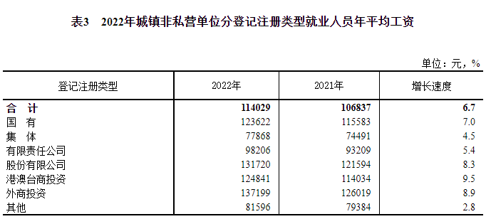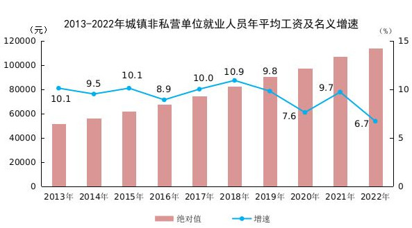 据国家统计局消息,2022年全国城镇非私营单位就业人员年平均工资为114029元,比上年增加7192元,名义增长[1]6.7%。扣除价格因素,2022年全国城镇非私营单位就业人员年平均工资实际增长4.6%。