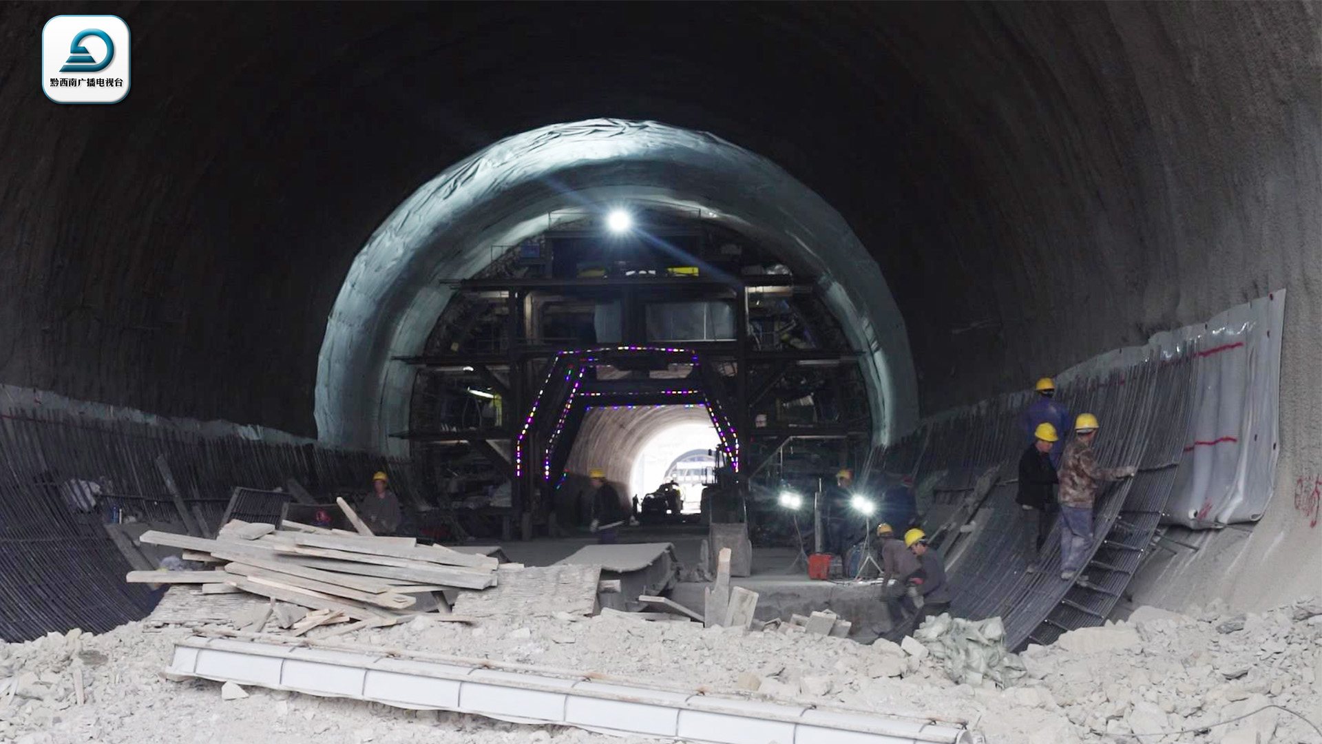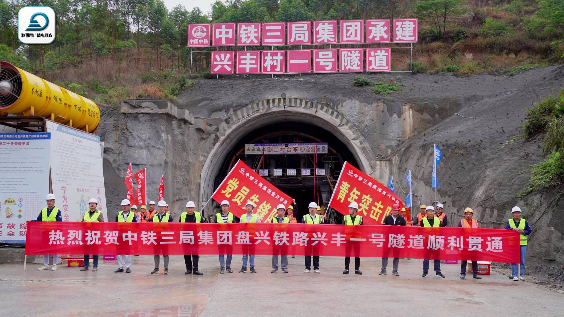 在盘兴铁路建设现场,三标段兴丰村一号隧道近日贯通。位于黔西南州兴义市清水河镇双桥村的兴丰村一号隧道,为盘兴高速铁路行车设计时速250公里区段双线隧道,隧道最大埋深约60米,全长480米。